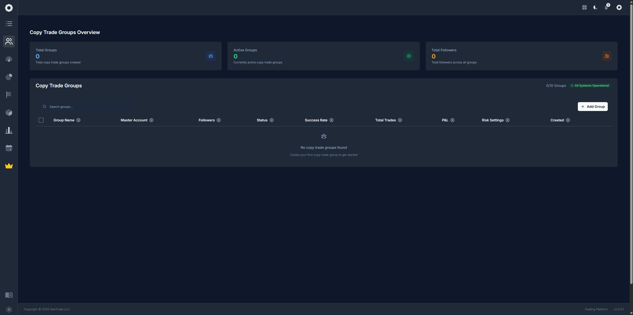 Visit dash.hextrade.io/copy-trade-groups and click โAdd Groupโ.